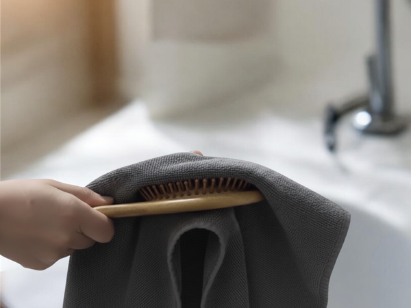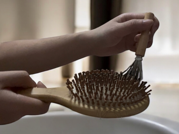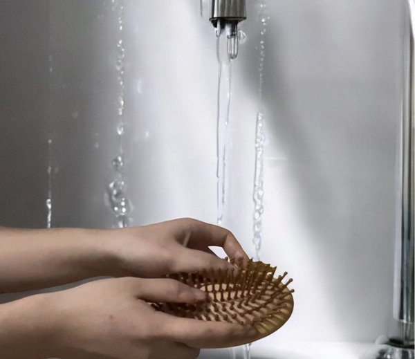 Rinse thoroughly under clean running water while working through the bristles or teeth with your fingers for 20-30 seconds ensuring loosened oil and residue are fully rinsed away.