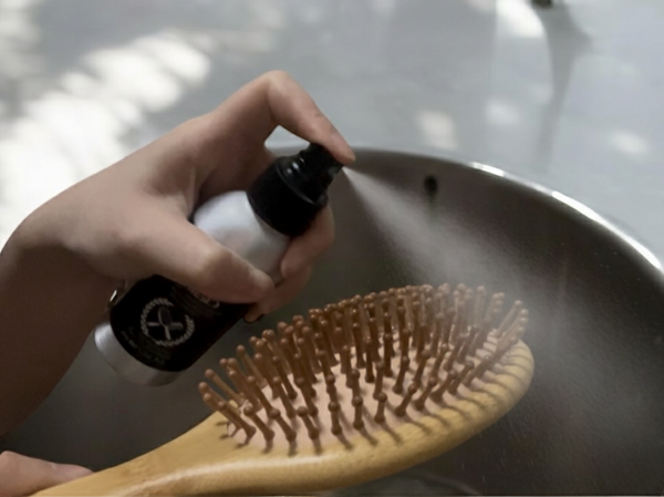 Shake the Hairbrush Cleanser well and spray evenly at the base of the bristles or along the teeth of the comb. Allow the cleanser to sit for about 5 minutes to let it gently loosen residue before rinsing.