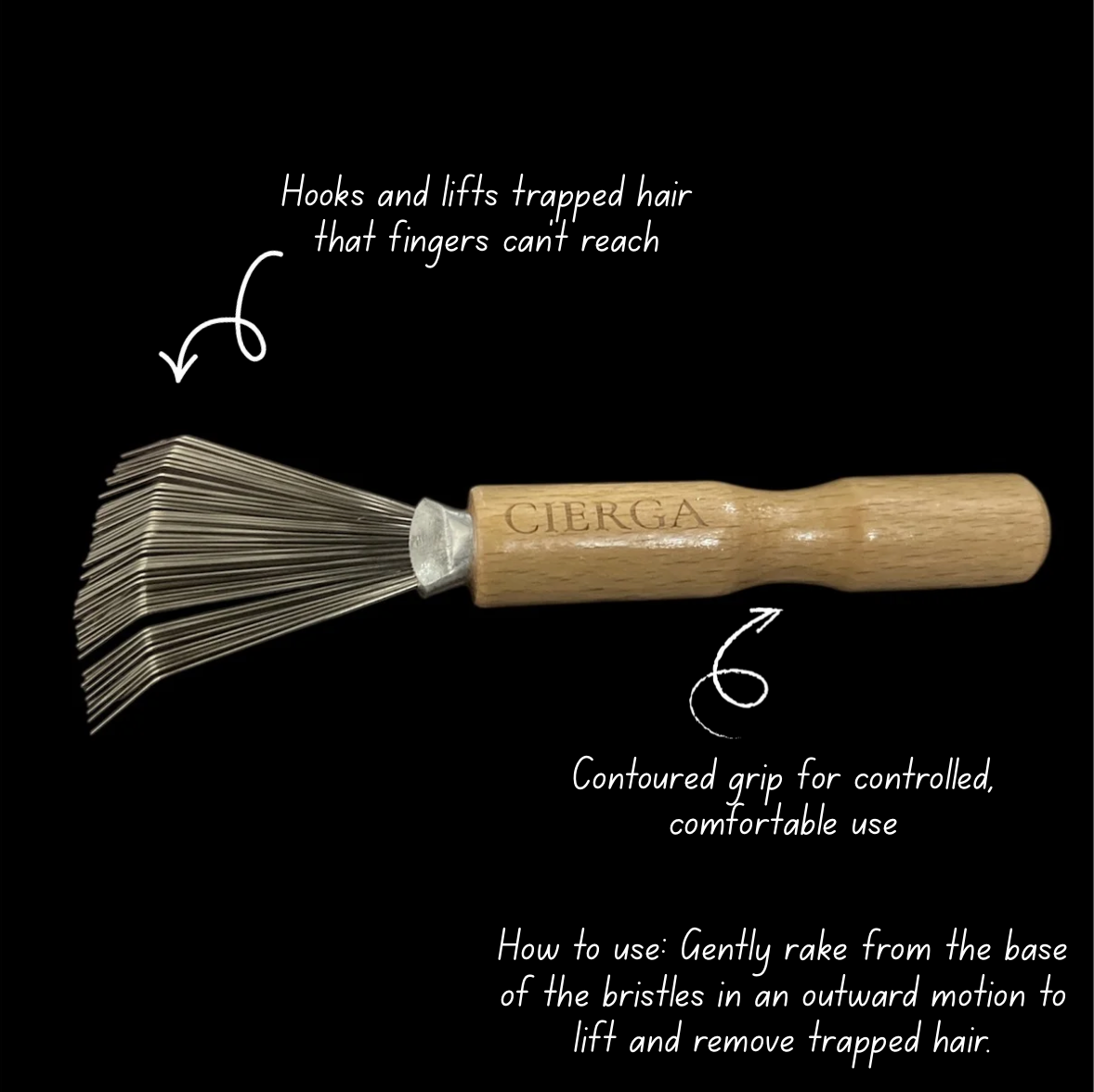 Sebum and product buildup bond tightly to brush and comb surfaces, especially in narrow crevices where it's hard to remove. The Hairbrush Cleanser is designed to break that grip on contact, softening buildup, allowing it to be lifted away and rinse cleanly — without soaking or harsh scrubbing.